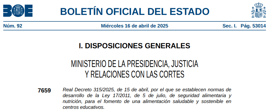 El Real Decreto 315/2025 introduce obligaciones específicas para las empresas de catering y los centros educativos, con el objetivo de mejorar la salud infantil y promover hábitos alimentarios sostenibles desde la escuela.